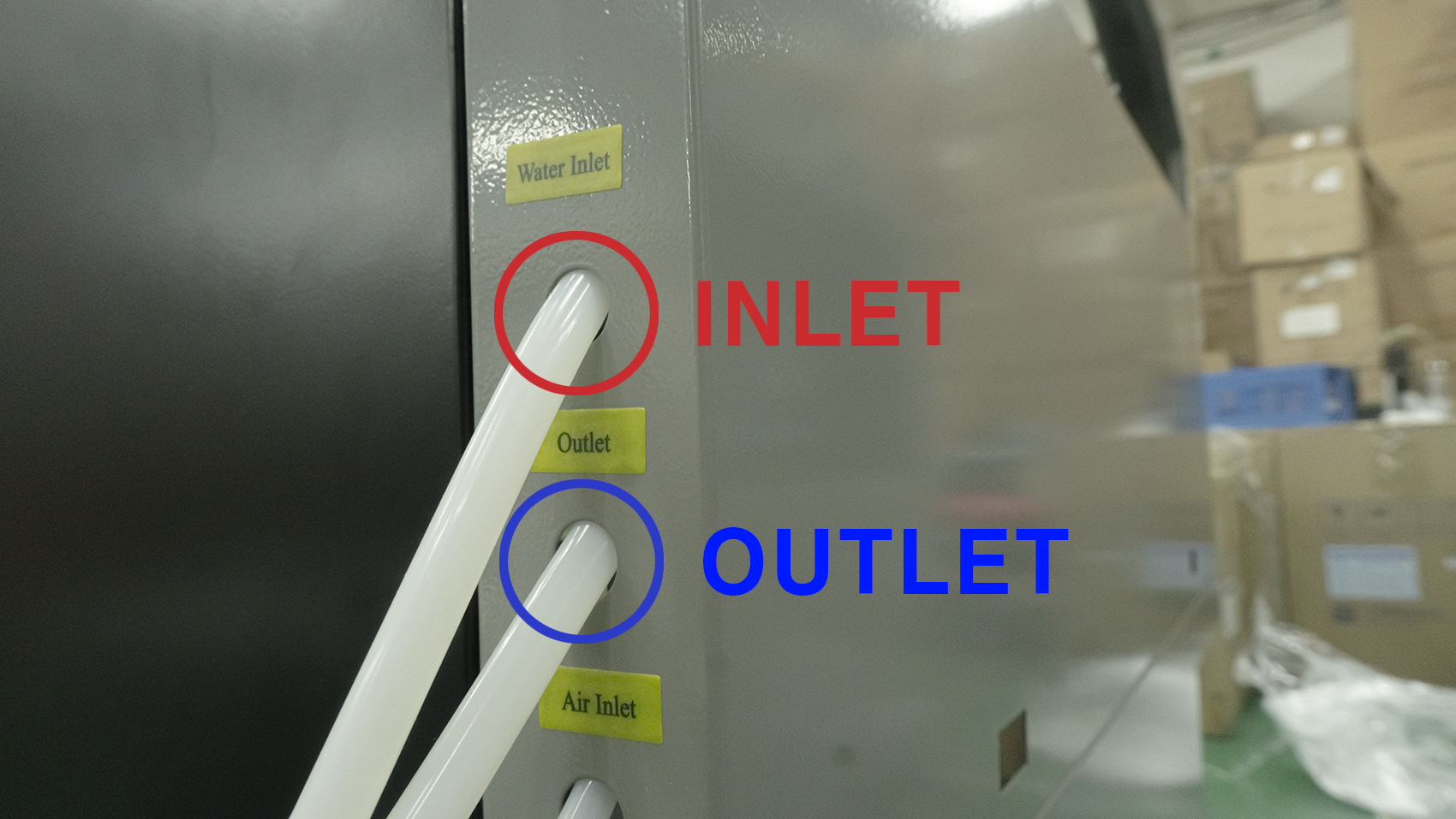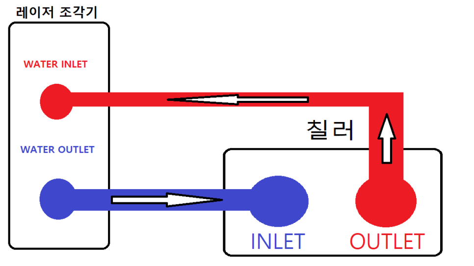 칠러의 INLET -> 레이저 조각기 WATER OUTLET