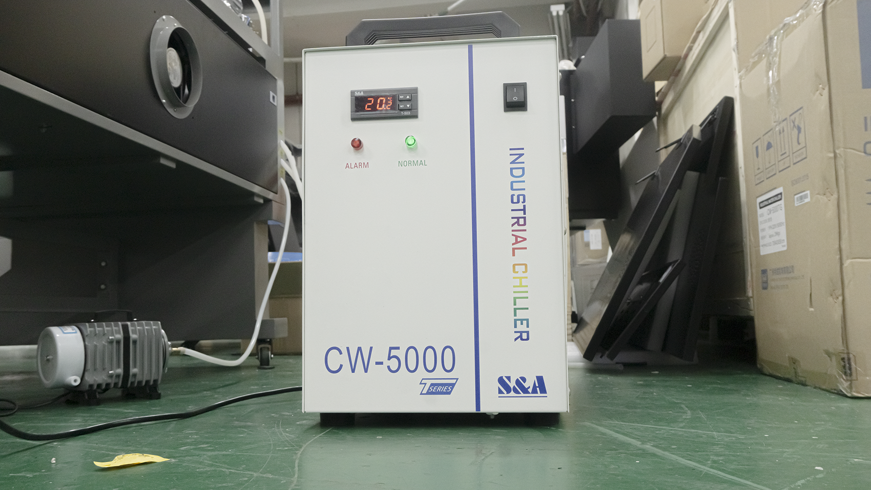 CNC 스핀들이나 레이저 튜브에 열이 발생하는 것을 잡아주는 장비라고 생각하시면 됩니다.