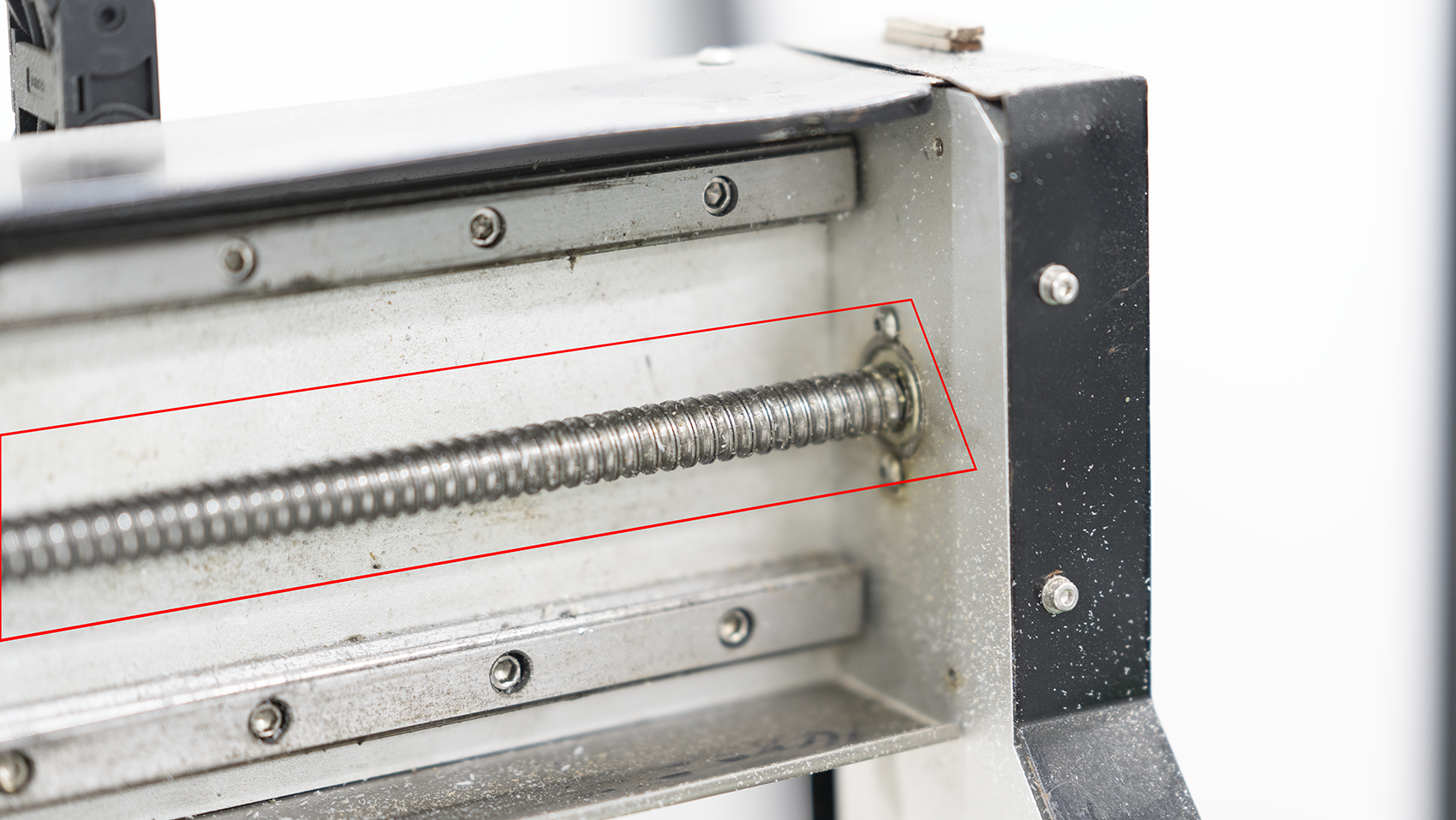 스크류와 가이드에 붙어있는 분진을 에어 스프레이, 혹은 에어 콤프레샤로 제거한 후 구리스를 도포하여