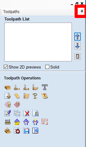 이 클립을 클릭하여 Toolpath가 닫히지 않도록 고정해주시면 됩니다.