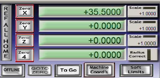 'Machine Coord's'를 클릭하여 X, Y, Z 축이 0으로 설정되어 있는지 확인합니다.
