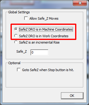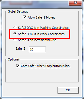 Safe DRO is in Machine Coordinates : 기계 원점에서 Z축 안전 높이가 설정됩니다.