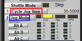 2. Jog Mode : Cont (연속 이동), Step (Cycle Jog Step에 입력한 만큼 값 이동)
