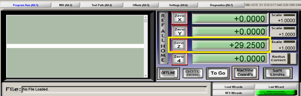 다시 Auto Tool Zero를 누르시면 Z축 값이 +29.2500으로 입력 됩니다.