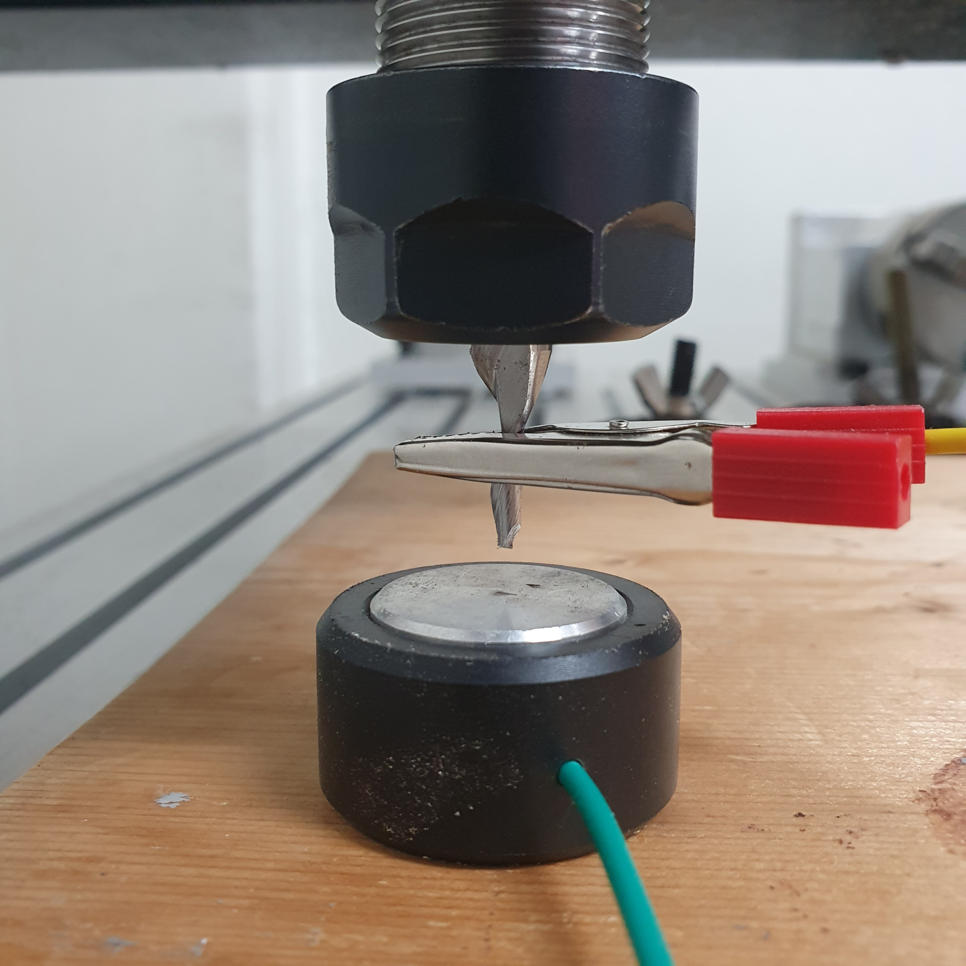 이때 날이 재료 상단 면에 딱 닿게 되면서 센서 셋팅과 Z축 높이 셋팅이 정상적으로 되었다고 보실 수 있습니다.