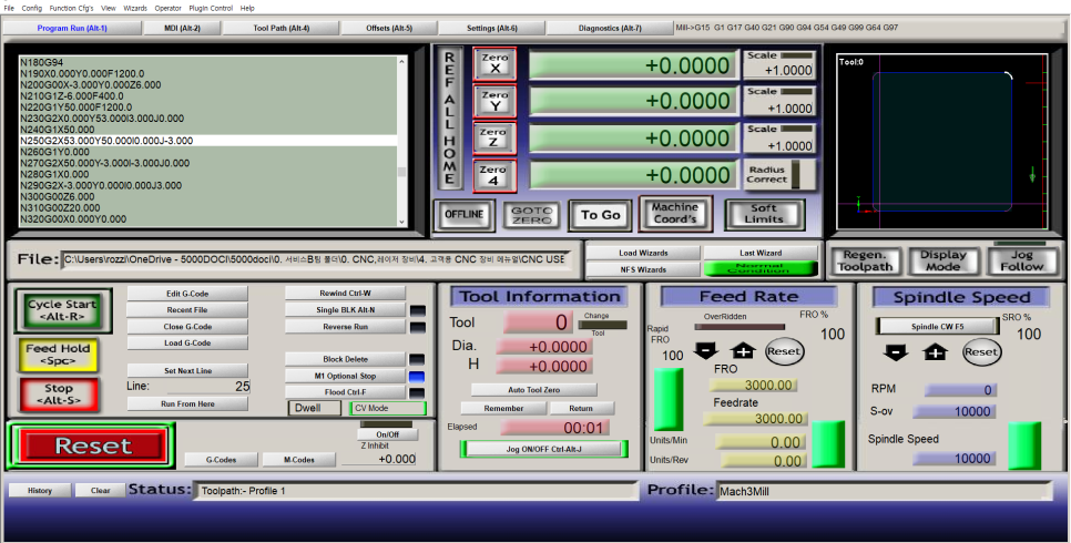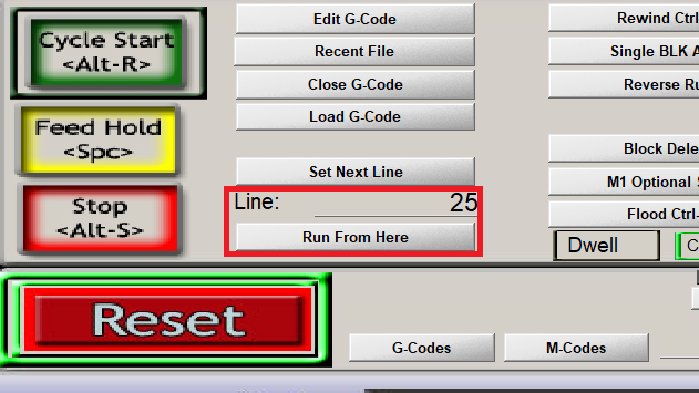 Cycle Start : 불러온 G-코드를 기반으로 가공을 시작하는 버튼입니다.
