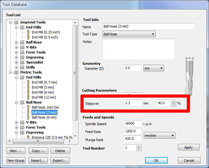 가공물의 크기와 엔드밀의 직경을 잘 선택한 후, Stepover 값을 설정해주시길 바랍니다.