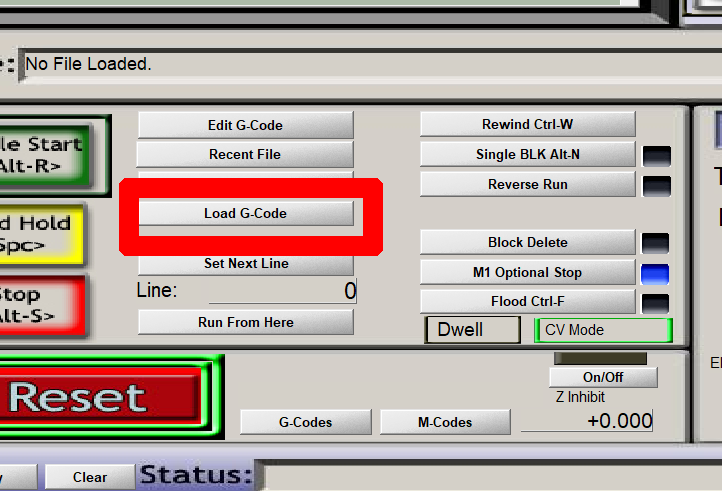 마하3 프로그램을 실행하시고 'Load G-Code'를 선택하여 파일을 불러옵니다.