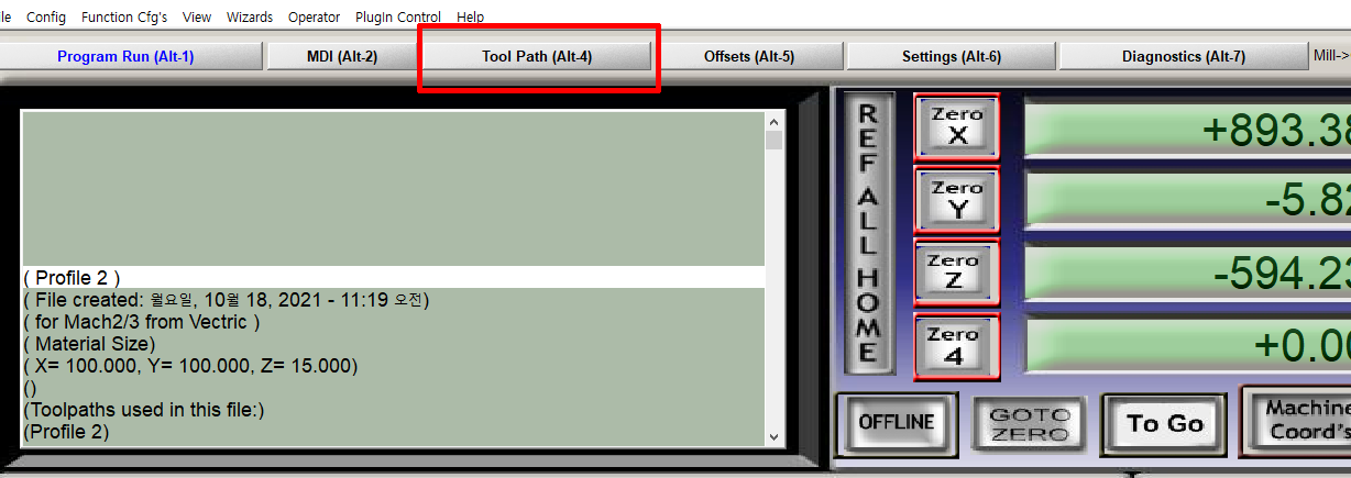 이번 포스팅에서는 아스파이어나 다른 CAM 프로그램으로 제작한 Toolpath (G-코드)를