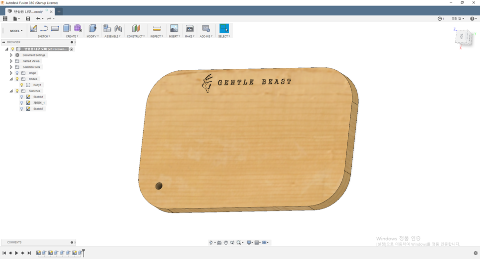 1차적으로 퓨전360을 이용하여 디자인을 뽑고 G-CODE 파일로 변환 작업을 진행합니다.