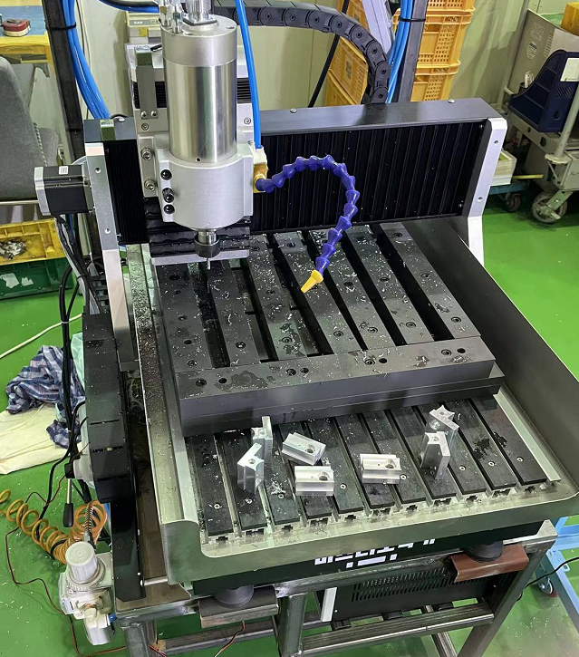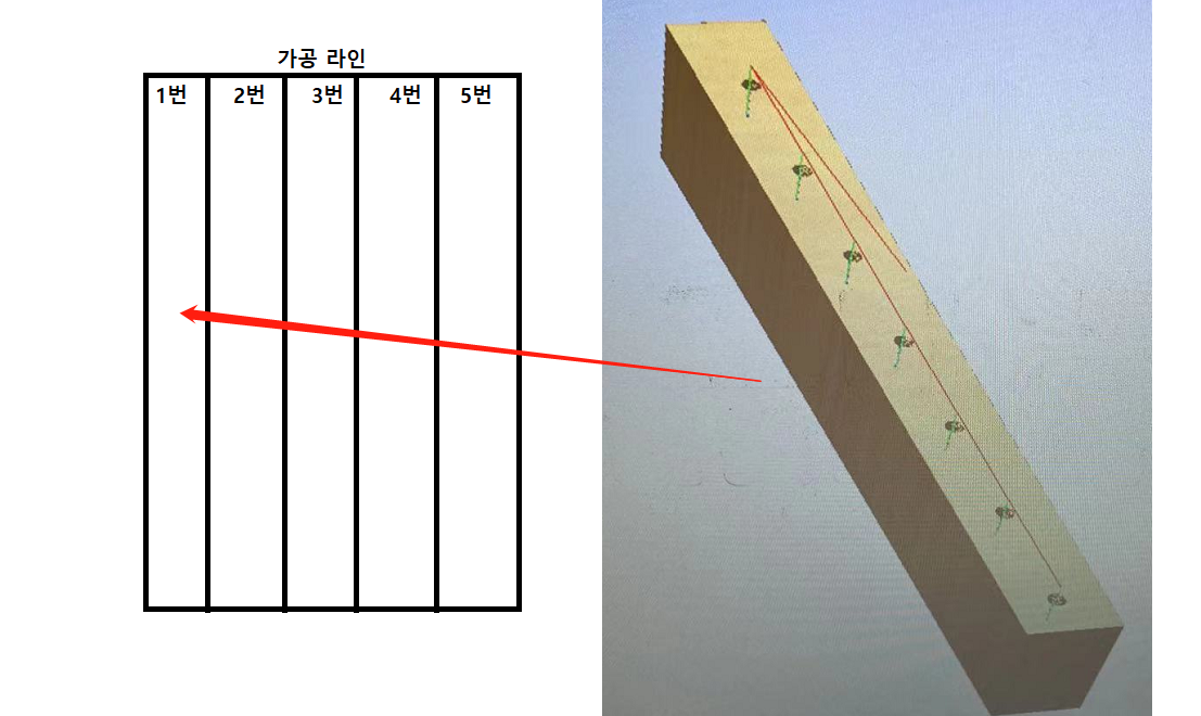이런식으로 한 라인씩 다른 가공물을 두고 가공을 하시면 여러가지 가공물을 한 CNC에서 가공 이 가능 합니다.